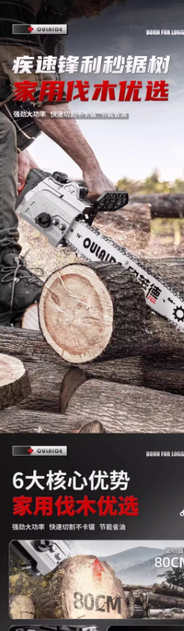 质造充电式电锯小型家用伐木锯锂电池大容量链锯户外锯树劈柴神器